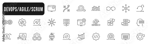 Wall mural set of devops, agile, scrum line icons. plan, process, monitor, coding, programming etc. editable st - Wall murals Wall mural set of devops, agile, scrum line icons. plan, process, monitor, coding, programming etc. editable st - Wall murals