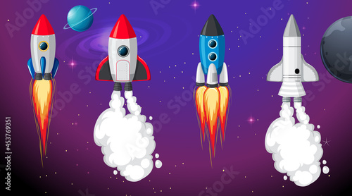 The watermark will not be included on Wall mural.: Set of different rocket and spaceship in space background