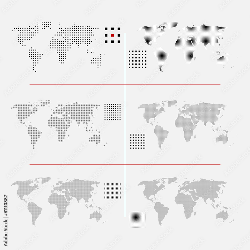 Wall mural set of dotted world maps in different resolution - Wall murals Wall mural set of dotted world maps in different resolution - Wall murals