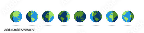 Wall mural set of earth globe icons in day and night. earth globe vector icons with shadow, isolated on white b