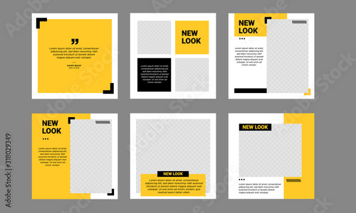 Wall mural set of editable minimal square banner template. black and yellow background color with stripe line s - Wall murals Wall mural set of editable minimal square banner template. black and yellow background color with stripe line s - Wall murals