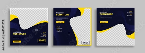 Wall mural set of editable minimal square banner template. blue yellow white background color with geometric sh