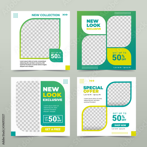 Wall mural : Set of editable square banner template - nature background color with stripe line shape - suitable for