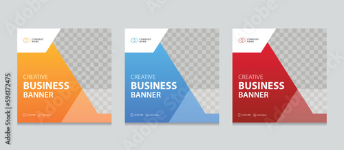 Wall mural : Set of editable square business web banner design template - background gradients color - suitable for
