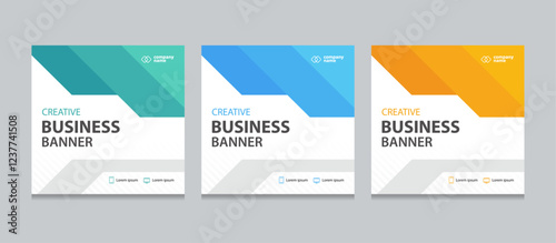 Set of editable square business web banner design template - three background color - suitable for socWall mural
