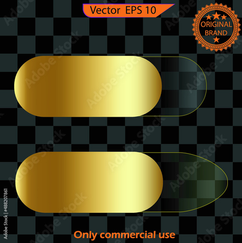 Wall mural set of empty glass gold buttons. button set color gold glossy.