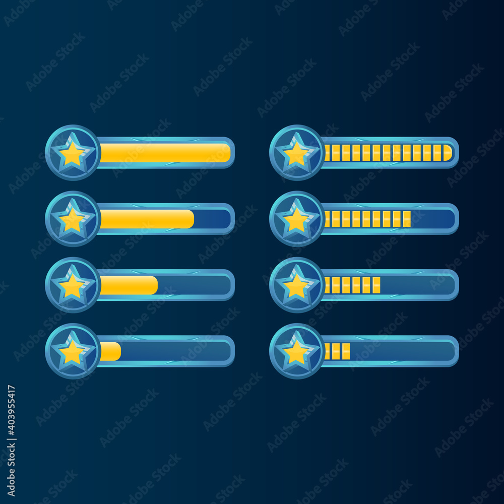 Wall mural set of fantasy blue glossy gui golden star progress bar for game ui asset elements vector illustrati - Wall murals Wall mural set of fantasy blue glossy gui golden star progress bar for game ui asset elements vector illustrati - Wall murals