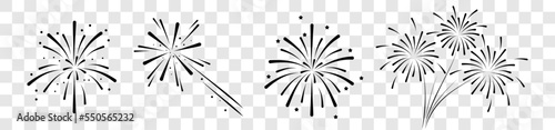 Wall mural : Set of firework icons - fireworks with stars and sparks isolated on white background - firework simple b