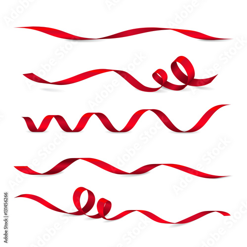 Set of five shiny red ribbons - vector realistic elements for your design greeting or gift card and iWall mural