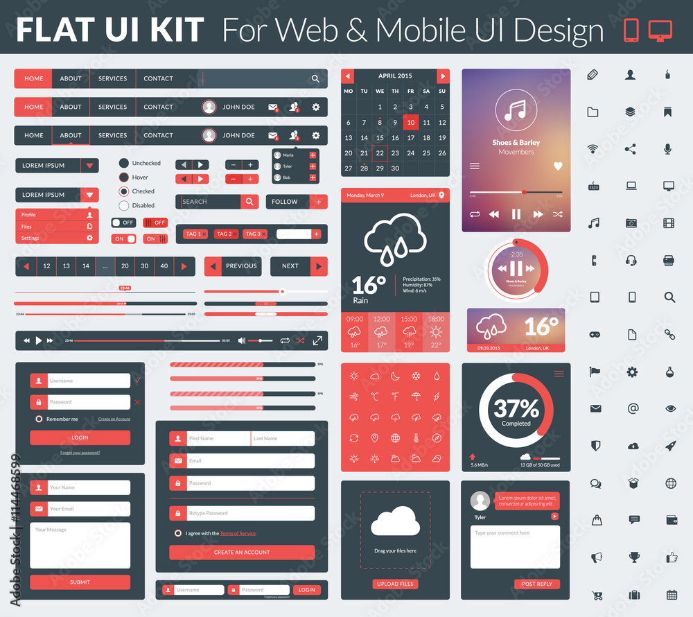 Wall mural set of flat design ui elements for website and mobile applications. vector illustration. icons, butt - Wall murals Wall mural set of flat design ui elements for website and mobile applications. vector illustration. icons, butt - Wall murals