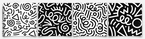 The watermark will not be included on Wall mural.: Set of fun black line doodle seamless pattern - creative minimalist style art background collection f