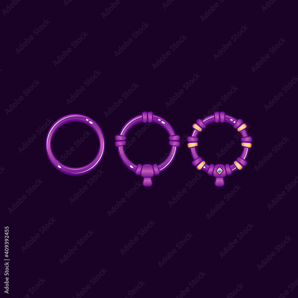 The watermark will not be included on Wall mural.: Set of game ui rounded purple jelly frame with grade for gui asset elements vector illustration