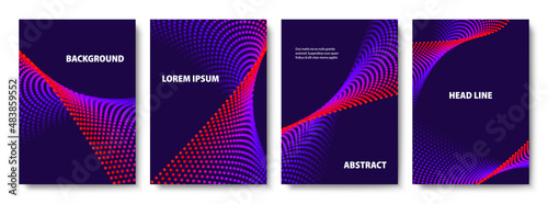 Wall mural set of geometric backgrounds of wavy colorful dots. modern vector illustration without transparency.