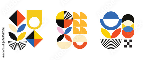 The watermark will not be included on Wall mural.: Set of geometric pattern element background vector - collection of abstract circle, square, polygon s