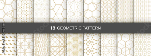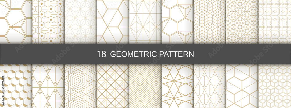 Wall mural set of geometric seamless patterns. abstract geometric hexagonal graphic design print 3d cubes patte