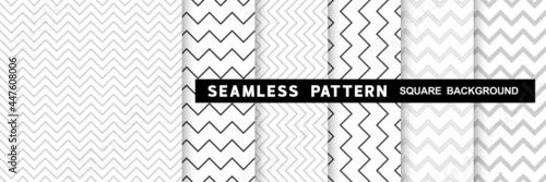 Wall mural : Set of geometric seamless zigzag line patterns in square shape background, black and white monochrom