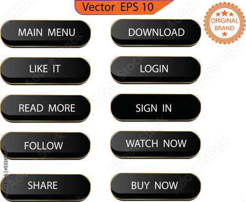 Wall mural set of glass black buttons and sliders, web icons of different forms. gradient mesh. button set colo