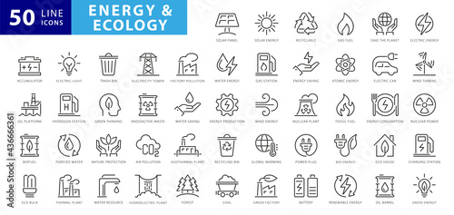 Wall mural set of green energy thin line icons. icons for renewable energy, green technology. design elements f