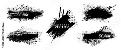 Wall mural : Set of grunge graphic elements - modern abstract background - vector monochrome illustration -