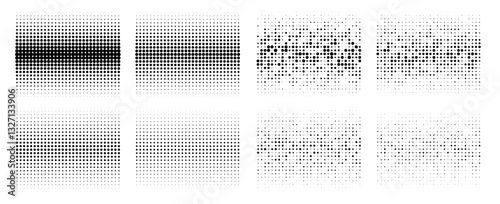 Wall mural : Set of halftone circle dots gradient pattern textures - half tone dots backgrounds - horizontal templa