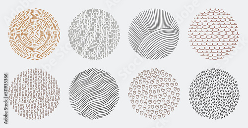 The watermark will not be included on Wall mural.: Set of hand drawn abstract lines and curves patterns - circle doodle background frame elements -