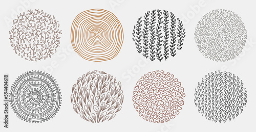 The watermark will not be included on Wall mural.: Set of hand drawn abstract lines and curves patterns - circle doodle background frame elements - artis