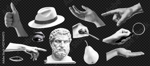 The watermark will not be included on Wall mural.: Set of hands gestures at the popart style and halftone effect on the transparent grid background - tr