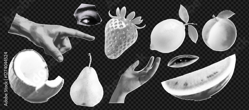 The watermark will not be included on Wall mural.: Set of hands gestures at the popart style and halftone effect on the transparent grid background - tr