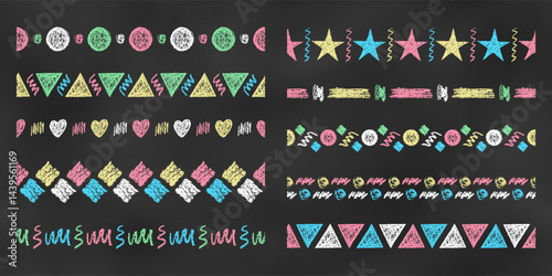 Wall mural Set of Horizontal Seamless Borders Chalk Drawn Sketches of Scribbles and Figures. - Wall murals Wall mural Set of Horizontal Seamless Borders Chalk Drawn Sketches of Scribbles and Figures. - Wall murals