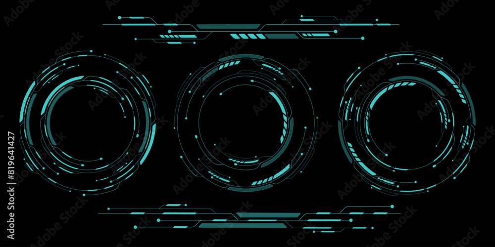 Set of hud elements for your futuristic design - round cyber frame - sci-fi, gui and ui graphic - moderWall mural