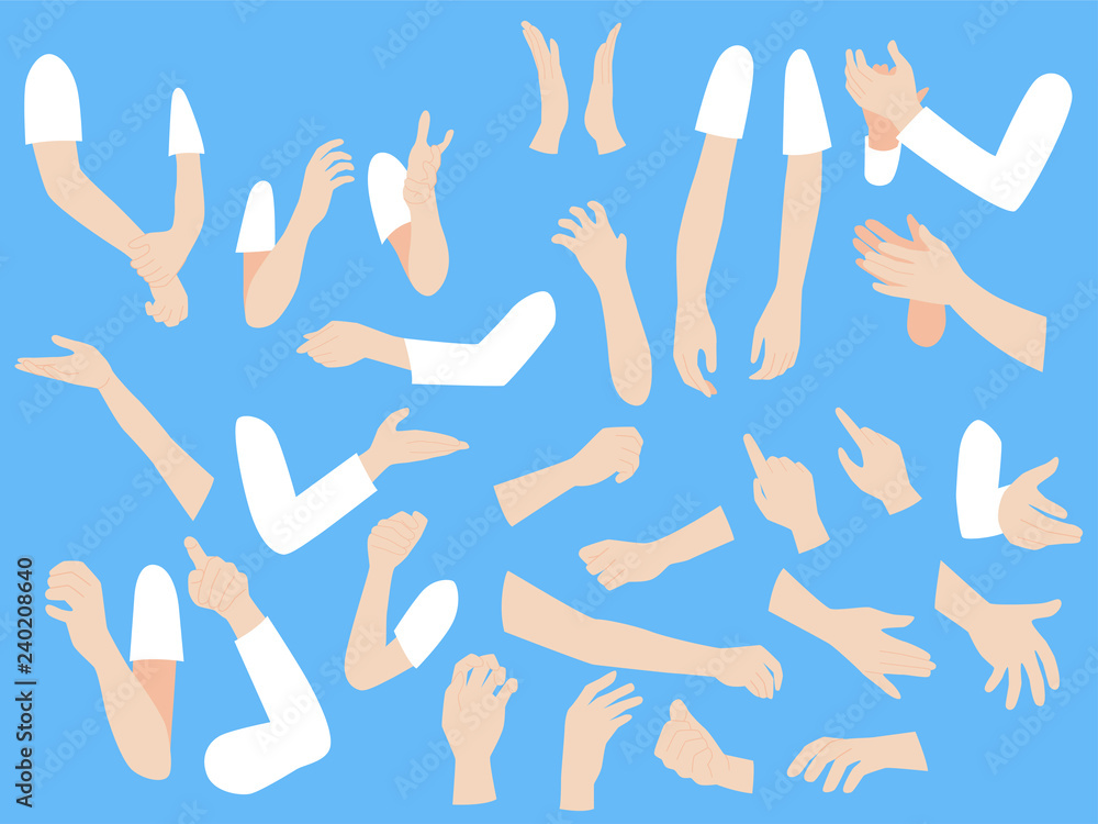 Set of human hands with different gestures collection for design, animation,palm and finger draw icoWall mural