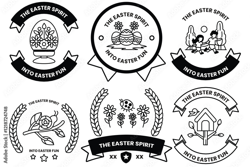 The watermark will not be included on Wall mural.: Set of illustrations in easter concept in line drawing style