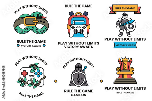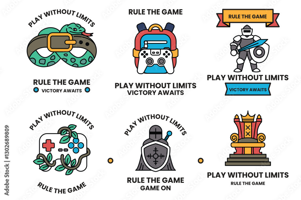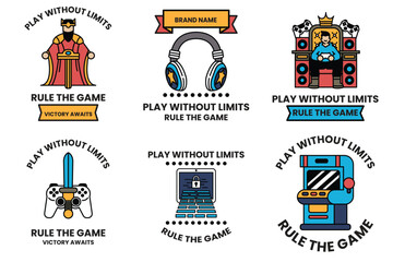 Wall mural set of illustrations in the concept of gamers in a line style - Wall murals Wall mural set of illustrations in the concept of gamers in a line style - Wall murals