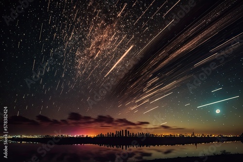 The watermark will not be included on Wall mural.: Set of illustrations of a landscape with asteriods, comets and shooting stars - created with generat