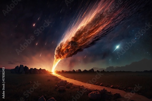 The watermark will not be included on Wall mural.: Set of illustrations of a landscape with asteriods, comets and shooting stars - created with generat