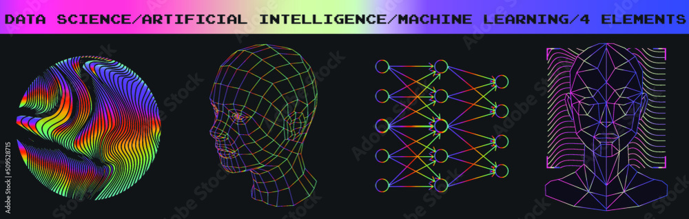 Wall mural set of images in sci-fi futuristic style. concept illustrations for neural network and artificial in