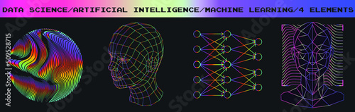 The watermark will not be included on Wall mural.: Set of images in sci-fi futuristic style - concept illustrations for neural network and artificial in
