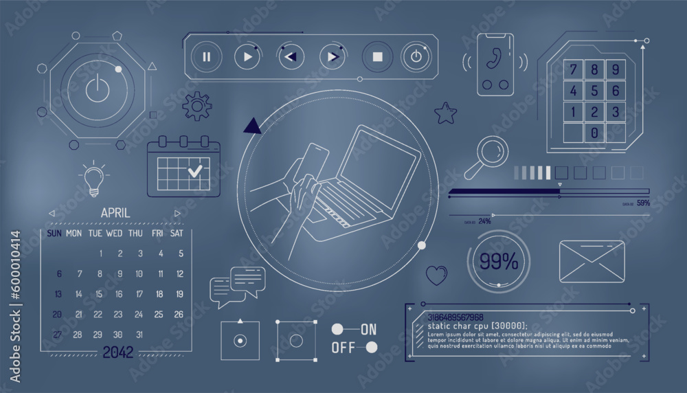The watermark will not be included on Wall mural.: Set of infographic elements about computer communication and social networks -
