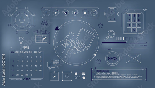 Wall mural : Set of infographic elements about computer communication and social networks -