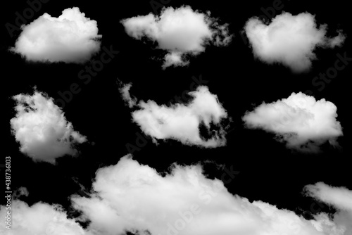 The watermark will not be included on Wall mural.: Set of isolated clouds on black background -