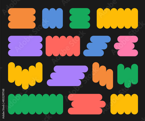 The watermark will not be included on Wall mural.: Set of isolated geometric bright blank text frames in y2k, groovy, retro style - abstract shapes - col