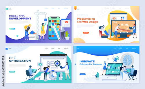 Wall mural set of landing page template for web development, seo, mobile apps, business solutions. modern vecto - Wall murals Wall mural set of landing page template for web development, seo, mobile apps, business solutions. modern vecto - Wall murals