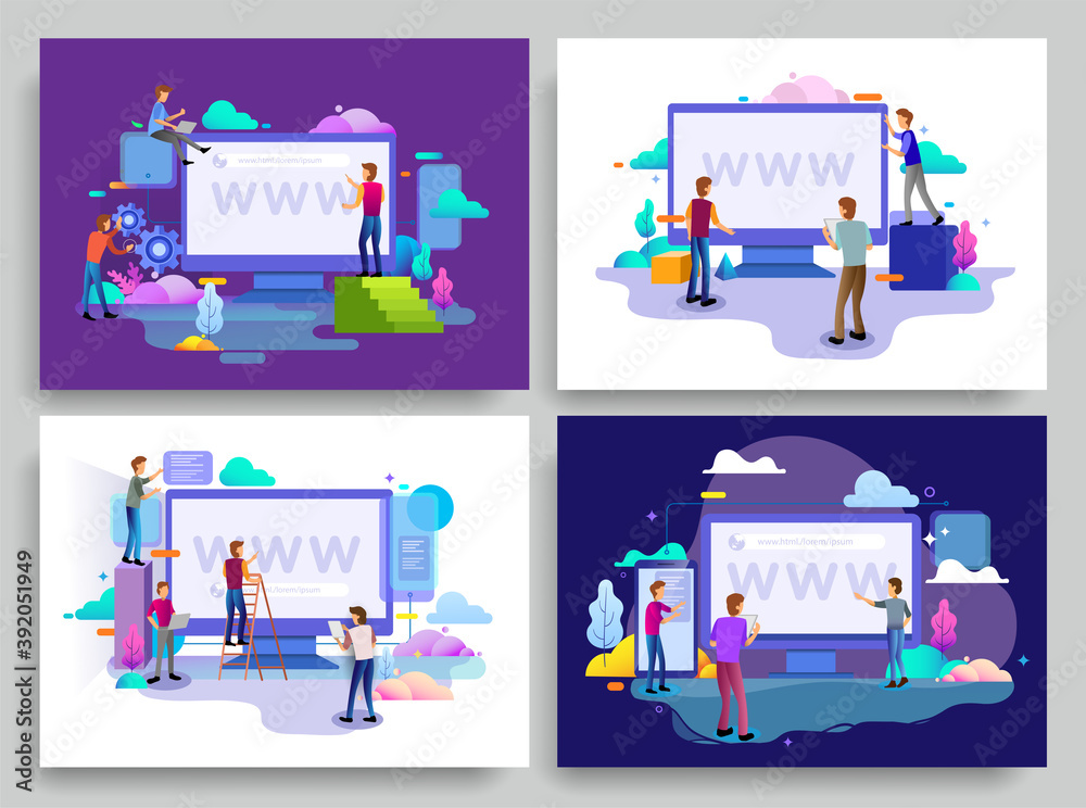 Wall mural set of landing page web design templates, business strategy, analytics and brainstorming. modern vec - Wall murals Wall mural set of landing page web design templates, business strategy, analytics and brainstorming. modern vec - Wall murals