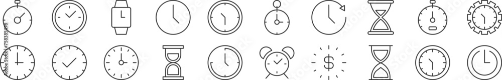 Wall mural : Set of line icons of clock as time - editable stroke - simple outline sign for web sites, newspapers,