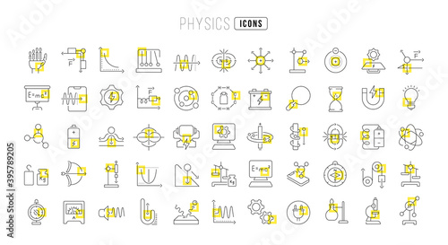 The watermark will not be included on Wall mural.: Set of linear icons of physics