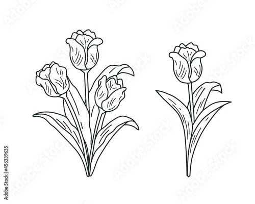 The watermark will not be included on Wall mural.: Set of linear images of tulips - vector illustration