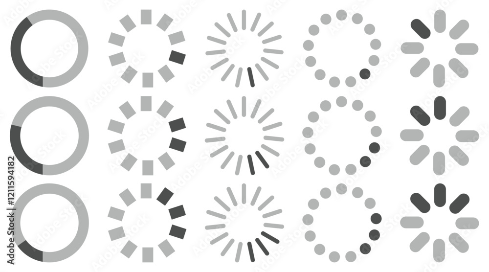 Wall mural set of loading icon vector. download, upload, progress and speed buffer circle sign. loading status  - Wall murals Wall mural set of loading icon vector. download, upload, progress and speed buffer circle sign. loading status - Wall murals