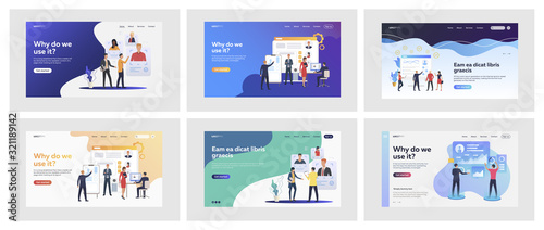 Wall mural set of managers discussing candidates profiles. flat vector illustrations of people analyzing statis - Wall murals Wall mural set of managers discussing candidates profiles. flat vector illustrations of people analyzing statis - Wall murals