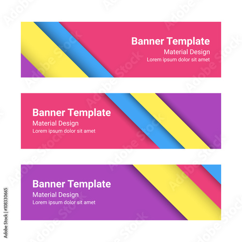 Wall mural set of modern colorful horizontal vector banners, page headers in a material design style. can be us