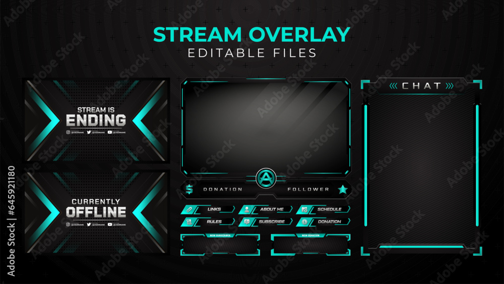 Wall mural set of modern design elements for overlay game streaming screen panel. game frame for streamers and